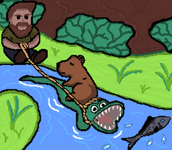 Content: A little crocodile who only minds its own business is captured by a guy throwing a lasso. Thank goodness, its friend, the capybara, is there to help – will it manage to rescue the croco?